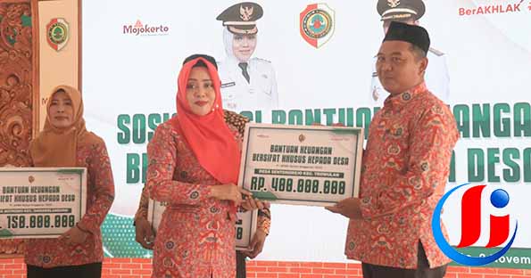 Bantuan yang bersumber dari APBD Tahun 2023 itu, diserahkan Bupati Ikfina secara simbolis kepada tiga desa penerima BK Desa yaitu Desa Jatirowo, Kecamatan Dawarblandong senilai Rp.150 juta, Desa Kertosari, Kecamatan Kutorejo senilai Rp.300 juta dan Desa Sentonorejo, Kecamatan Trowulan senilai Rp.400 juta.