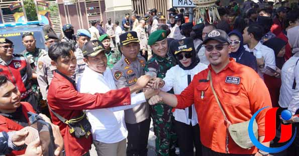 Usai penyampaian pendapat, Forkopimda Sidoarjo dan mahasiswa melanjutkan kegiatan dengan doa bersama, makan bersama dan baksos berupa pembagian beras ke sejumlah driver ojek online di depan Mako Polresta Sidoarjo.