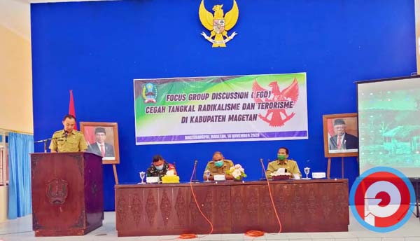 MAGETAN, PETISI.CO – Badan Kesatuan Bangsa dan Politik (Bakesbangpol) Kabupaten Magetan menyelengarakan Focus Group Discussion (FGD) tahun 2020 dalam tema menangkal radikalisme dan terorisme. Tujuan FGD 2020 membangun kerjasama dalam mencegah dan menangkal paham radikalisme dan terorisme agar tidak berkembang serta memberikan pemahaman dalam menjaga dan mengantisipasi masuknya paham radikalisme dan terorisme di wilayah Kabupaten Magetan yang digelar di gedung Korpri, Senin (16/11/2020).