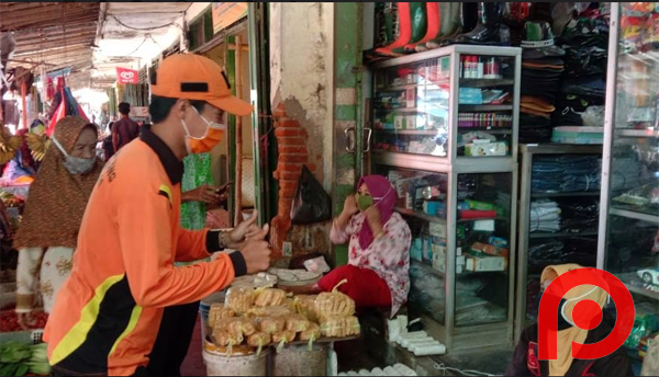 Mereka mensosialisasi, bahwa di kawasan pasar diwajibkan pakai masker, cuci tangan. Karena kawasan tersebut, merupakan potensi besar terjadi penularan Covid-19.