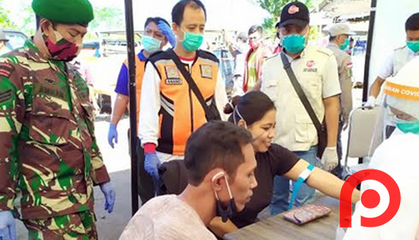 “Para petugas dari BPBD, TNI, Polri, hingga petugas kesehatan ikut berjaga di sana setiap pengunjung yang masuk ke pasar diperiksa suhu tubuhnya,” katanya.