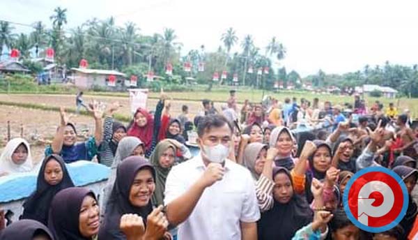 DHARMASRAYA, PETISI.CO Warga Jorong Sungai Kilangan, Kenagarian Sungai Dareh, Kecamatan Pulau Punjung, Kabupaten Dharmasraya, Provinsi Sumatera Barat, Senin (17/08/2020), menyambut kedatangan Bupati Dharmasraya Sutan Riska Tuanku Kerajaan di tengah-tengah kesibukan Bupati dalam kegiatan Hari Ulang Tahun (HUT) RI ke 75.