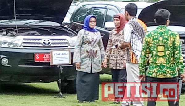 Semua kendaraan dinas para pejabat dicek kelayakannya oleh Bupati dan Wakil Bupati Jombang yang didampingi Sekda dan semua kepala SKPD serta Camat se Labupaten Jombang.