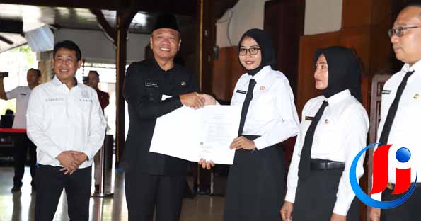 Tulungagung, petisi.co – Bupati Tulungagung, Gatut Sunu Wibowo, SE, ME menyerahkan Petikan Keputusan Bupati tentang Pengangkatan CPNS dan PPPK Tahap 1 Formasi Tahun 2024, di Pendopo Kongas Arum Kusumaning Bongso, Rabu (28/05/2025). Sebanyak 72 CPNS dan 433 PPPK menerima keputusan pengangkatan setelah melalui proses seleksi ketat dan kompetitif.