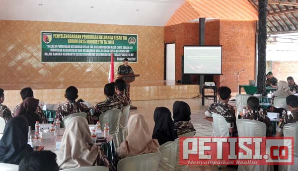 MOJOKERTO, PETISI.CO – Untuk memaksimalkan pembinaan teritorial dalam rangka pembinaan wilayah, Kodim 0815 Mojokerto menyelenggarakan kegiatan Pembinaan Keluarga Besar TNI, bertempat di Pendopo Griya Paramitra Jalan Gajah Mada Nomor 4, Cikaran, Kota Mojokerto, Jawa Timur, Jum’at (29/03/2019) siang.