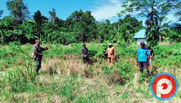Guna memastikan program berjalan sesuai target, Danramil 1712-02/Pantai Timur Lettu CAJ Lukas Dimara bersama Kepala Distrik Pantai Timur, Adam Sambrau meninjau langsung lokasi pembuatan rumah pastori. (cah)