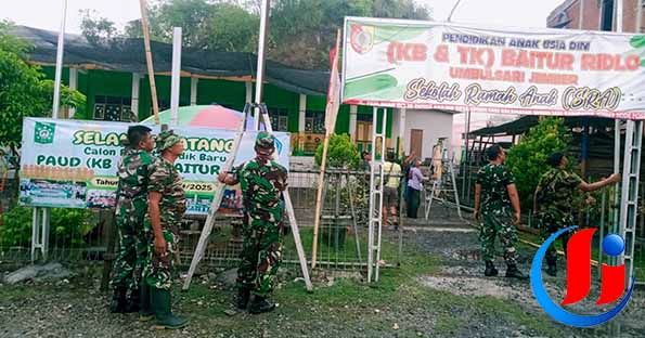 Jember, petisi.co – Koramil 0824/19 Umbulsari melaksanakan kegiatan karya bakti di halaman TK/PAUD Baitul Ridlo, Desa Umbulsari, Kecamatan Umbulsari, dengan memasang paranet sebagai peneduh, 14 November 2024. Langkah ini bertujuan untuk menciptakan lingkungan bermain yang nyaman dan aman bagi anak-anak usia dini.