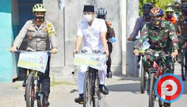 Forkopimda bersepeda dari Tugu Garuda Alun-alun menyusuri sepanjang jalan hingga Pasar Basah, mengkampanyekan pentingnya mematuhi protokol kesehatan, sekaligus membagikan masker kepada masyarakat yang dijumpai di sepanjang rute bersepeda.