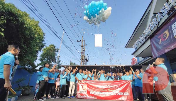 Kakanim Jember melepas balon sebagai tanda dimulainya kegiatan jalan sehat.