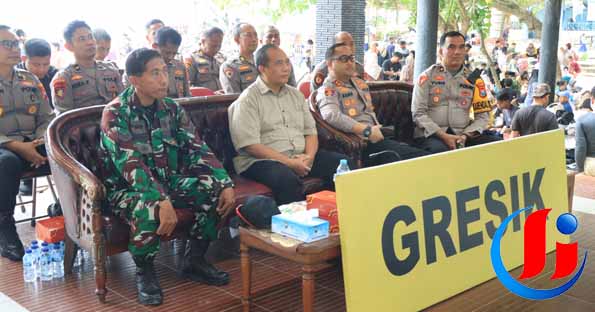 Kapolres Gresik AKBP Mochamad Nur Azis, SH, S.I.K, M.Si bersama Forkopimda Gresik menyalurkan bantuan tunai secara langsung