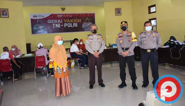 “Kehadiran saya ke gerai vaksin TNI-Polri untuk cek secara langsung pelaksanaan vaksinasi masyarakat, dan memastikan bahwa pelaksanaannya mengunakan protokol kesehatan, dan vaksinasi ini merupakan upaya TNI-Polri dalam membantu pemerintah untuk mempercepat imun komunal terhadap pandemi Covid-19,” ujar AKBP Rendra.