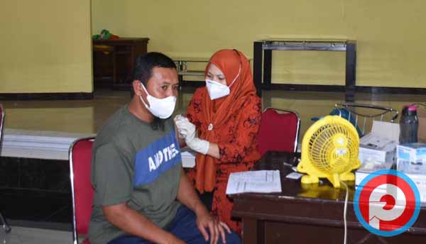 Kompol Yanuardi S.H., M.H, Kabag Sumda saat mendampingi Kapolres menyampaikan pelaksanaan vaksinasi massal ini dilaksanakan mulai hari ini hingga sampai stok vaksin yang tersedia sebanyak 156 vial habis.