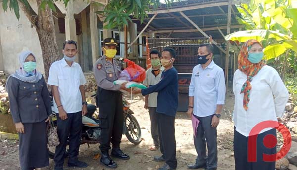 SINJAI, PETISI.CO – Kapolres Sinjai diwakili Kapolsek Sinjai Tengah menyerahkan bantuan sembako penanganan Covid 19 tahun 2020 dari Pemerintah Kabupaten (Pemkab) Sinjai. Bertempat di Desa Mattunreng Tellue, Kecamatan Sinjai Tengah, Kabupaten Sinjai, Rabu(06/05).