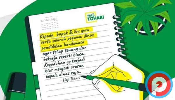 Sekadar informasi, Tohari dari fraksi PKB, meminta kepada bapak dan ibu guru serta seluruh pegawai Disdikbud Bondowoso agar tetap tenang dan bekerja seperti biasa.