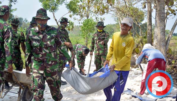 LAMONGAN, PETISI.CO – Kerja keras dalam kekompakan dari Prajurit TNI jajaran Kodim 0812 Lamongan bersama warga. Meski panas terpapar terik matahari, pelaksanaan pra TMMD di Desa Tebluru, Kecamatan Solokuro, Kabupaten Lamongan Tahun 2020 berupa sasaran fisik pembuatan jalan sejauh 900 Meter ini terlihat hasilya meski baru dalam tahap pengurukan pedel.