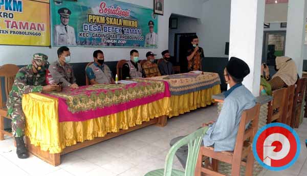 PROBOLINGGO, PETISI.CO – Koramil 0820/23 Gading ikut ambil bagian dalam pelaksanaan sosialisasi Pemberlakuan Pembatasan Kegiatan Masyarakat (PPKM) skala mikro di pendopo Desa Betek Taman, Kecamatan Gading, Kabupaten Probolinggo.