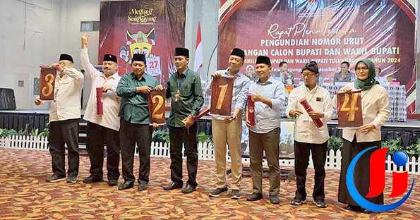 Ketua KPU Tulungagung, Moh. Lutfi Burhani mengatakan nomor urut keempat paslon Pemilihan Bupati-Wakil Bupati (Pilbup–Wabup) di Pilkada Tulungagung 2024 sudah ditetapkan dan diperkuat dengan berita acara.
