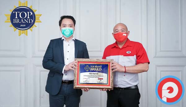 - Feriadi Soeprapto, Presiden Direktur JNE, mengungkapkan rasa syukur atas penghargaan istimewa ini. “Mewakili seluruh karyawan dan manajemen JNE, kami mengucapkan terima kasih sebesar – besarnya kepada Majalah Marketing beserta Frontier Group atas penghargaan Top Brand Award 2020 kategori Courier Service”. Sebagai penghargaan bergengsi, Top Brand Award diberikan kepada merek-merek yang mendapatkan predikat “TOP”,” tuturnya.
