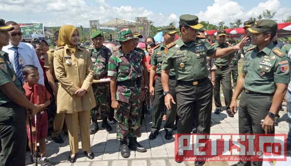JEMBER, PETISI.CO – Usai memimpin berlangsungnya upacara penutupan program Tentara Manunggal Membangun Desa (TMMD) ke-104 di lapangan Desa Gayasan, Rabu 27 Maret 2019 pagi, Mayjen TNI Tri Yunarto mengajak masyarakat untuk ikut melakukan penanaman pohon di sepanjang ruas jalan di desa tersebut.