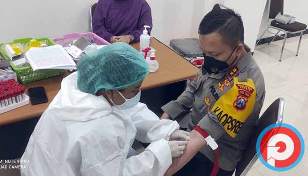 Kapolres Gresik, AKBP Arief Fitrianto, SH, S.I.K, MM, beserta personil melaksanakan pemeriksaan kesehatan berkala tahun 2021, di Aula Mapolres Gresik, Rabu (24/3/2021).