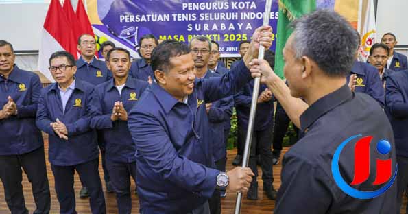 Surabaya, petisi.co – Kepala Satpol PP Kota Surabaya, Achmad Zaini, resmi dilantik sebagai Ketua Persatuan Tenis Seluruh Indonesia (PELTI) Surabaya untuk masa bhakti 2025–2029. Pelantikan digelar di Kantor Bappeda Litbang Surabaya, Kamis (26/6/2025), dan dilakukan langsung oleh Ketua Umum Pengprov PELTI Jawa Timur, Ismed Jauhar.