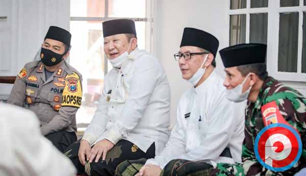 Gus Firjaun bersama Bupati Jember, Ir H Hendy Siswanto, yang didampingi Dandim 0824/Jember, Letkol Inf. Laode M Nurdin dan Kapolres Jember, AKBP Arif Rachman Arifin serta Plt. Kepala BPBD Jember, Moh. Jamil bersilaturahmi ke kediaman keluarga besar Almarhum Habib Sholeh Tanggul, merupakan atensi Gugus Tugas Covid-19 Kabupaten Jember.