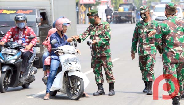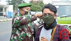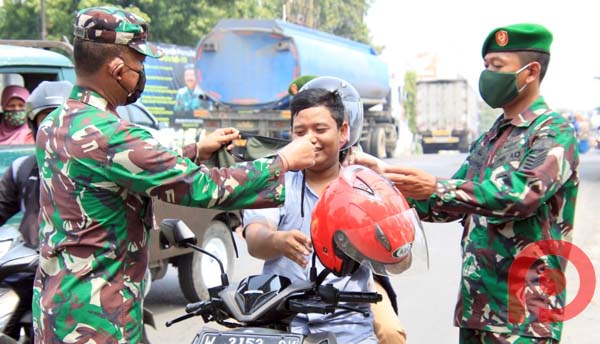 Betapa tidak, senyum ramah serta sapa tak segan-segan dilakukan oleh prajurit di bawah kendali Letkol Inf Sidik Wiyono ketika membagikan ratusan masker bagi para pengendara yang lewat di depan Makodim, Jalan Panglima Sudirman.