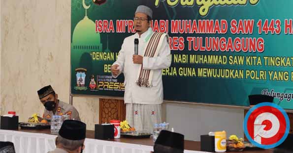 Kapolres Tulungagung AKBP Handono Subiakto dalam sambutannya mengatakan, Peringataan Isra’ Mi’raj Nabi Muhammad SAW setiap tahun diperingati sebagai peristiwa turunnya perintah dari Allah SWT untuk melaksanakan Sholat lima waktu.