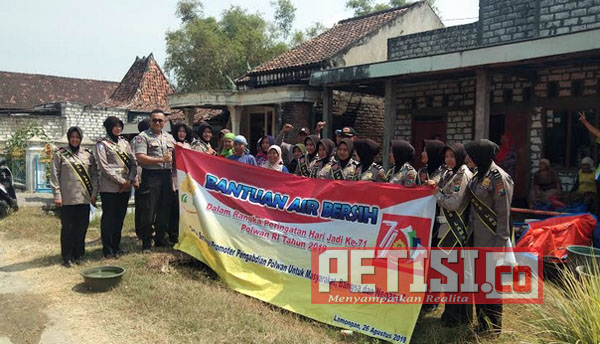 LAMONGAN, PETISI.CO – Dalam rangka menyambut ulang tahun Polwan RI ke 71, wujud sosial korp wanita Polri ini menyalurkan air bersih untuk warga Desa Kedungkumpul Dusun Walangkopo Kec. Sarirejo Kab. Lamongan, Senin (26/8/2019).