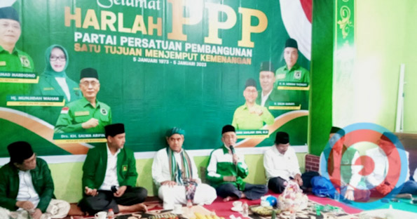 BONDOWOSO, PETISI.CO – Dengan mengusung tema ‘Satu Tujuan Menjemput Kemenangan’, seluruh jajaran pengurus Dewan Pimpinan Cabang (DPC) Partai Persatuan Pembangunan (PPP) Kabupaten Bondowoso, gelar tasyakuran dalam menyambut Hari Lahir (Harlah) ke-50, Kamis, (15/1/2022), kantor DPC PPP setempat.