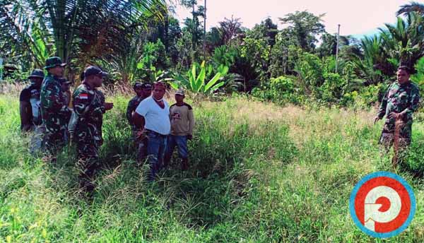 Sebagai bentuk kesiapan pelaksaanaan TMMD, Kapten Inf Ratno bersama Babinsa dan masyraakat di lokasi melakukan pemasangan patok. (cah)