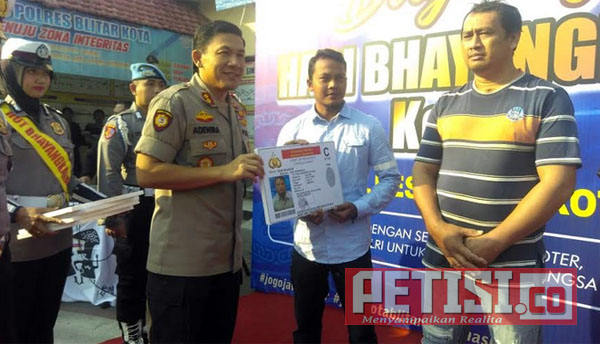BLITAR, PETISI.CO – Dalam rangka memperingati Hari Ulang Tahun (HUT) Bhayangkara ke 73, Satlantas Polres Blitar menggelar beberapa kegiatan, diantarannya memberikan Surat Ijin Mengemudi (SIM) gratis kepada masyarakat yang lahir tanggal 01 Juli.