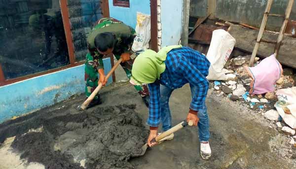 GRESIK, PETISI.CO – Tetap semangat bersama rakyat, Satgas TMMD di temani sekop siap melaksanakan perintah, mereka berbaur, bahu membahu melaksanakan pekerjaan fisik pembangunan jalan dan Rehap rumah tidak layak huni (RTLH), Kamis (17/6/2021).