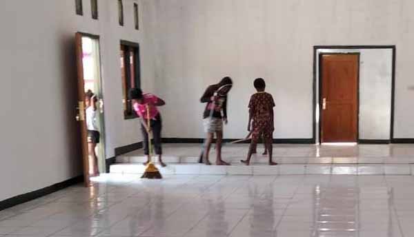 Tanpa disuruh, anak-anak Kp. Dorba beramai-ramai menuju lokasi Gereja TMMD membantu Satgas dan warga melaksanakan pembersihan, Rabu, (14/7/21).