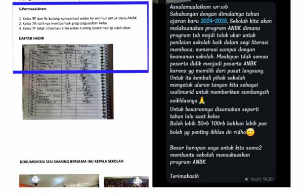 “Ini puncak kekecewaan kami. Mereka (sekolah) berpikir tarikan wajib tahun 2024 dirasa aman, tanpa kuitansi dan tidak ada yang protes. LPJ pun gak ada. Lalu dibaleni maneh (diulangi lagi) di tahun 2025 ini, kita diwajibkan bayar Rp 100 ribu, kalau dikalikan 919 siswa dari seluruh kelas, wes terkumpul Piro? Ketok moto Rp 91 juta lebih. Duit gede lho iku,” timpal NY.