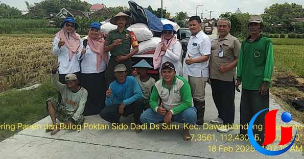 Mojokerto, petisi.co – Babinsa Suru Koramil 0815/08 Dawarblandong Kodim 0815/Mojokerto melaksanakan kegiatan pendampingan dan pemantauan serap gabah oleh Bulog KC Mojokerto di