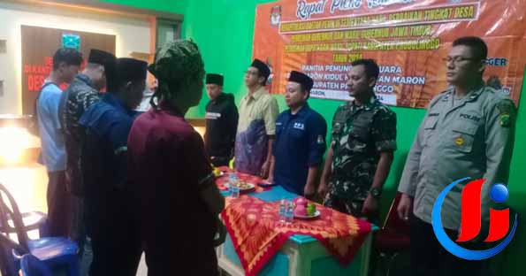 PROBOLINGGO, PETISI.CO – Anggota Koramil 0820/21 Maron Kopda Dedi Santoso melakukan pendampingan, pengawalan dan pengamanan pelaksanaan kegiatan rapat pleno terbuka daftar pemilih