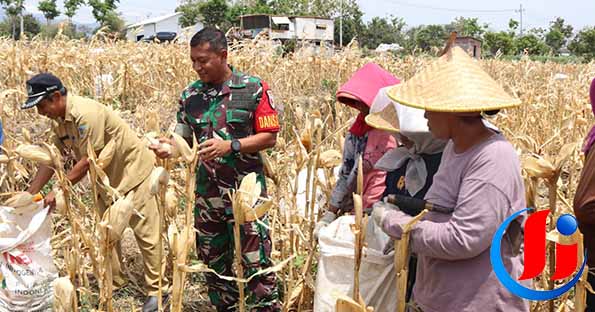 Gerakan Antisipasi Darurat Pangan Nasional, Koramil Kotaanyar Dampingi Kegiatan Panen Jagung