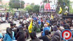 SURABAYA, PETISI.CO – Massa yang tergabung dalam Gerakan Tolak Omnibus Law (Getol), Kamis (16/7/2020) memadati area depan Kantor Gubernur Jatim, di Jalan Pahlawan