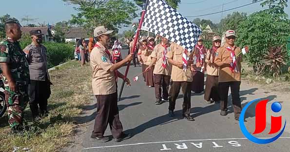 Sinergitas TNI-Polri Amankan Parade Bendera Siswa-Siswi MI di Plosoklaten