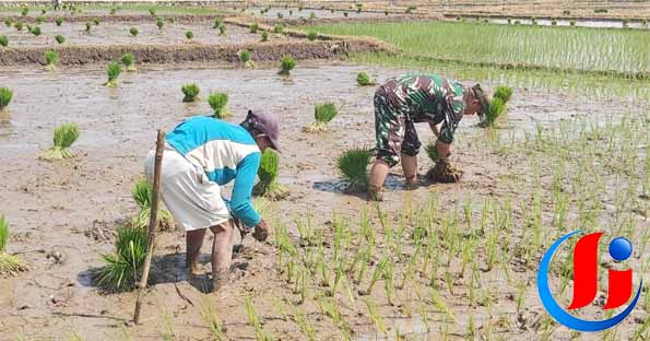 Koramil Dringu Dampingi Tanam Padi Dalam Rangka Sukseskan Gerakan Antisipasi Darurat Pangan Nasional