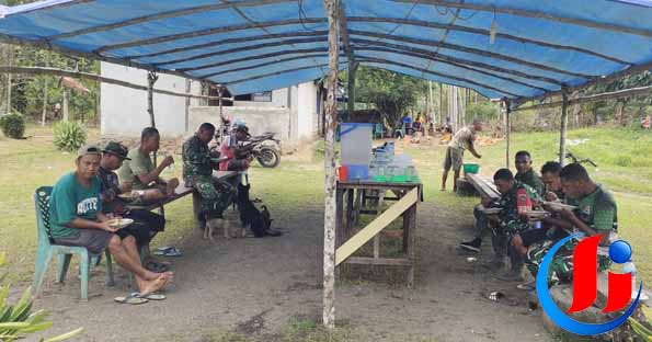 Satgas TMMD Kodim Sarmi Makan Siang Bareng Warga di Lokasi TMMD Kampung Podena