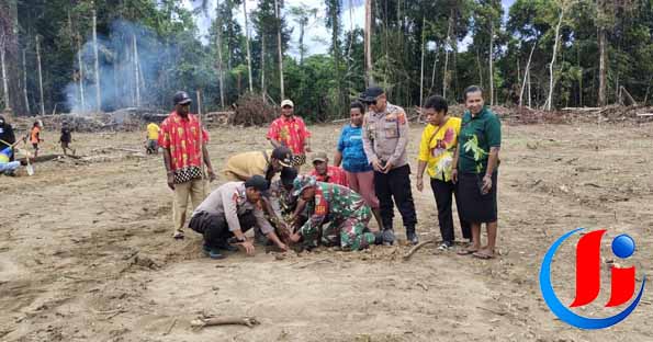 Sarmi, petisi.co – Dalam rangka mendukung program penghijauan dan menjaga kelestarian lingkungan, Satgas TMMD ke-123 Kodim 1712/Sarmi bersama Polres dan Pemerintah Daerah