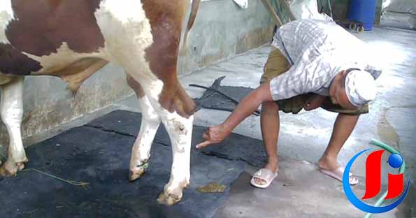 “Dari 9 ekor sapi punya saya sakit PMK kritis, hanya bisa ndeprok (terpuruk) dan tidak kuat berdiri. Kalau dibangunkan harus dibantu ngangkat. Mulutnya berbusa dan lendir terus keluar tandanya sakit gak mau makan. Bagian belahan kuku juga ada yang sudah busuk dan mengeluarkan darah,” akunya sambil menunjuk kuku sapi yang dimaksud.