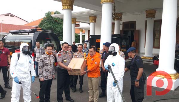 Peralatan tersebut diserahkan oleh Kapolda Jatim, Irjen Pol Luki Hermawan kepada Wakil Gubernur Jatim Emil Elestianto Dardak didampingi Sekdaprov Heru Tjahyono di Halaman Gedung Negara Grahadi, Surabaya, Jumat (20/3/2020).
