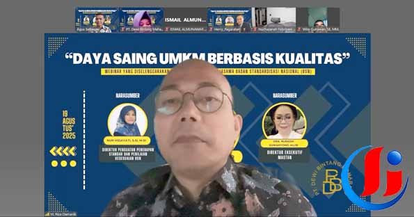 Surabaya, petisi.co – PT Dewi Bintang Maharatu (Debinra) meluncurkan salah satu divisinya Debinra Training dengan melakukan webinar bertajuk Daya Saing Berbasiskan Kualitas, Selasa (19/8/25). Acara tersebut menghadirkan narasumber dari Kementerian UMKM, Badan Standardrisasi Nasional (BSN) dan Masyarakat Standardrisasi Indonesia (Mastan).