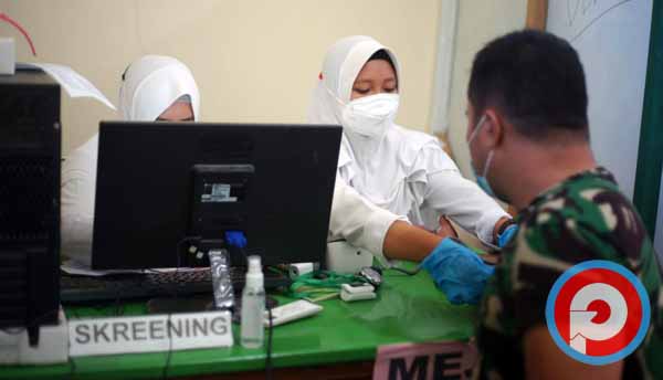 Seperti yang dilakukan tenaga pendidik Rindam XII/Tpr, yang menerima vaksinasi Covid-19 di Rumkit Tk. IV Singkawang, Kamis (27/5/21). (cah)