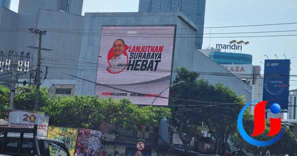SURABAYA, PETISI.CO – Baru-baru ini, telah muncul videotron dengan wajah dan nama Eri Cahyadi atau Wali Kota Surabaya. Videotron itu tampak di Jalan Basuki Rahmat. Pada video tersebut, nampak foto Eri mengenakan kemeja putih. Kemudian ada tulisan “Lanjutkan Surabaya Hebat #2024MELUCAKERI #RELAWANERICAHYADi.”