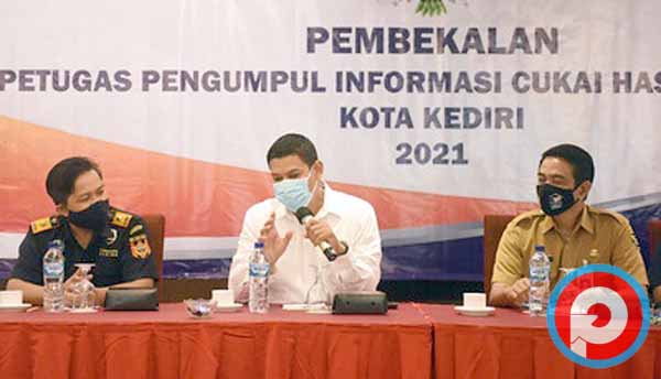 KEDIRI, PETISI.CO – Wali Kota Kediri, Abdullah Abu Bakar memberi pembekalan kepada para petugas yang ditunjuk sebagai petugas pengumpul informasi cukai hasil tembakau tahun 2021 di Ruang Tegowangi Grand Surya Hotel, Selasa (21/9). Dikarenakan masih dalam situasi pandemi, kegiatan dibagi menjadi 3 kelompok dan dilaksanakan selama 3 hari. Mulai hari ini hingga hari kamis. Dari total 139 orang perwakilan dari masing-masing kelurahan, ada 47 petugas yang hari ini menerima pembekalan.
